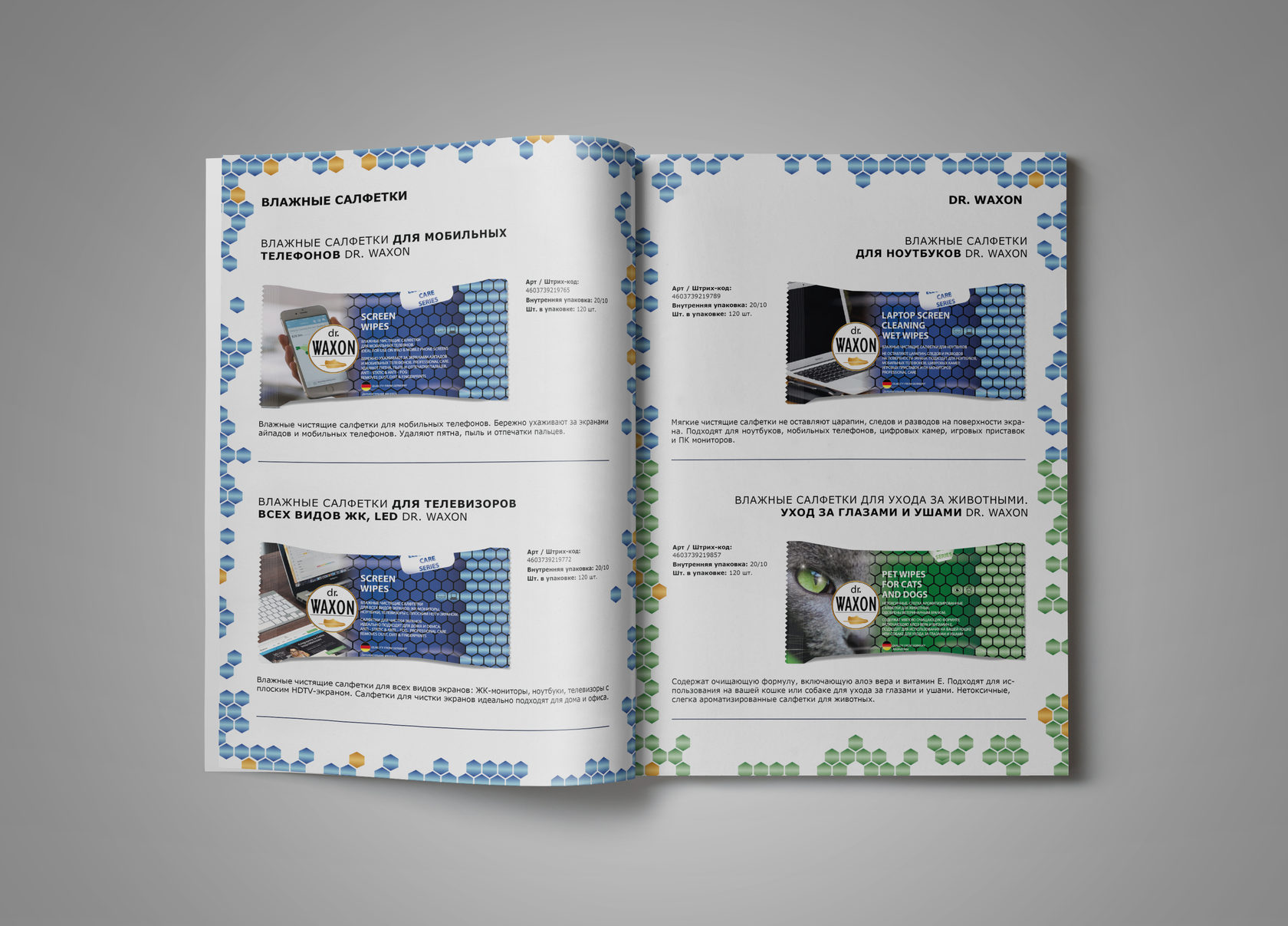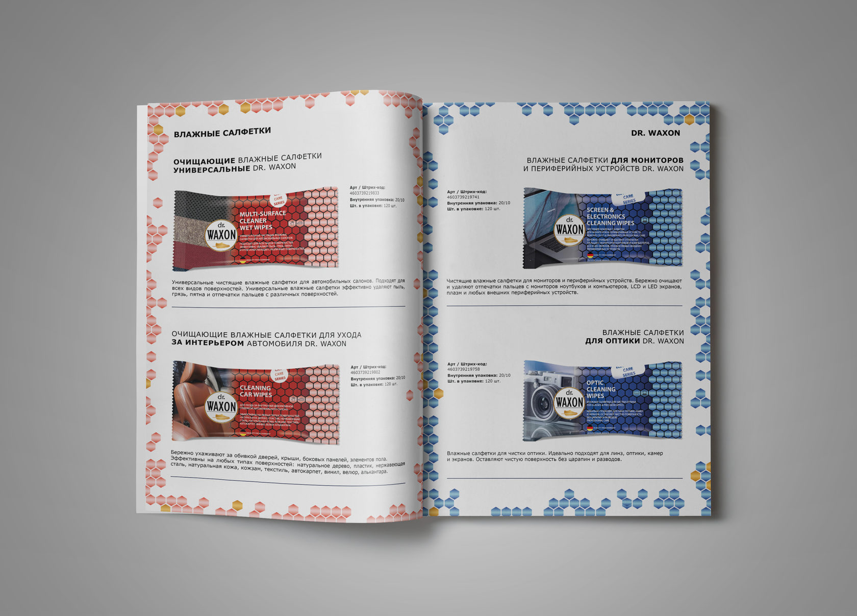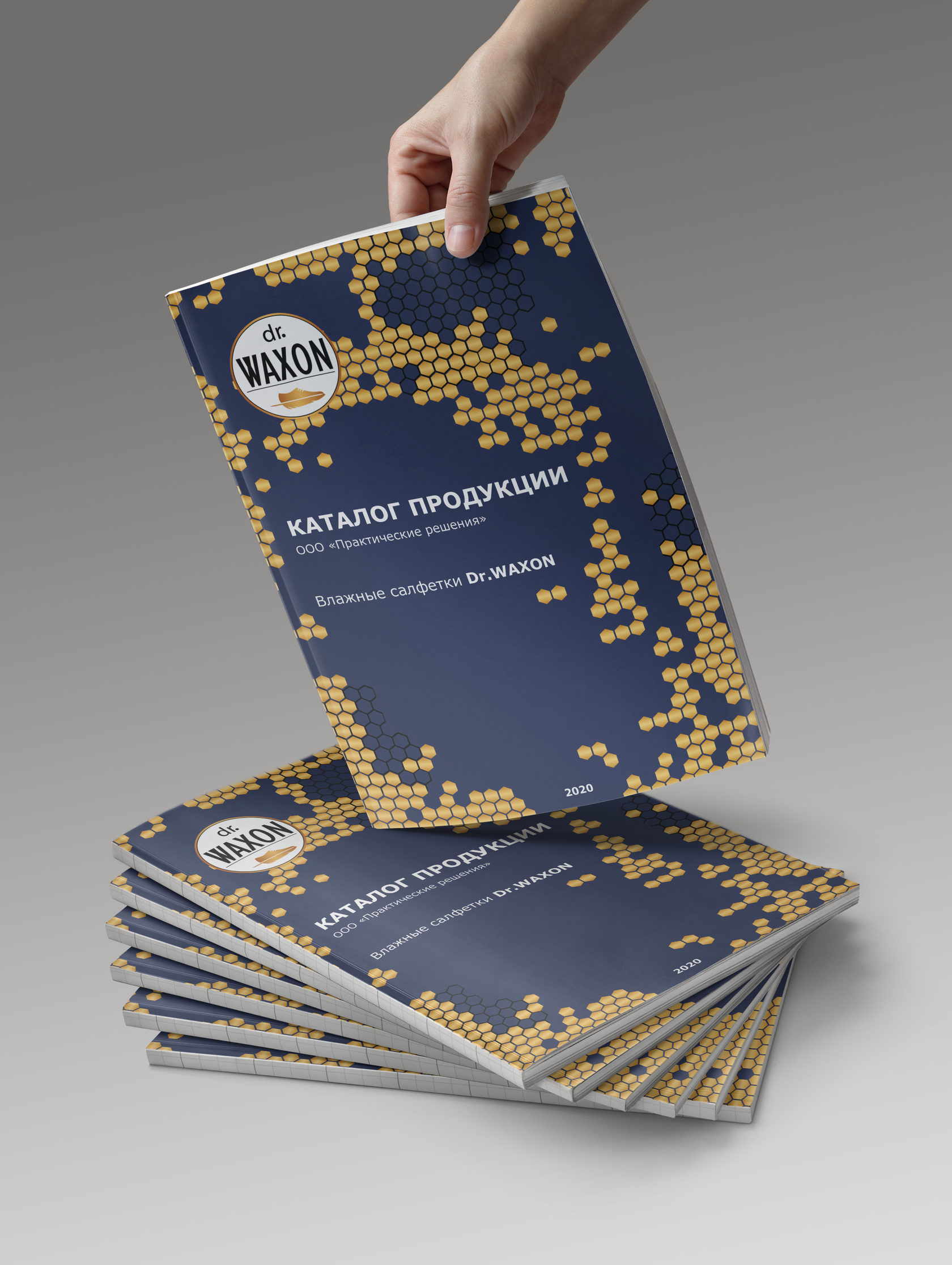 Дизайн влажных салфеток для бренда Dr.Waxon и печатный каталог